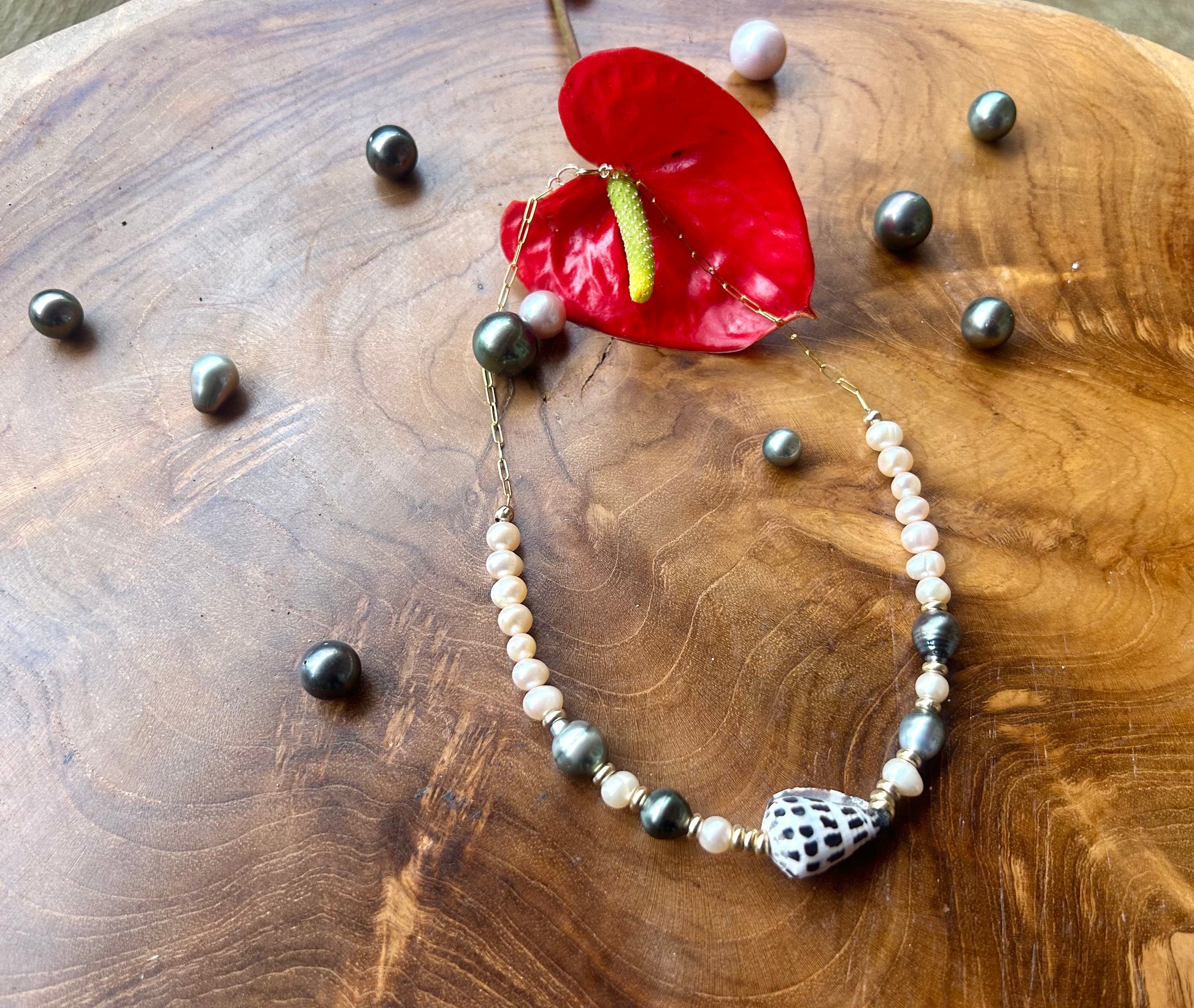 Tahitian pearls + Freshwater pearls + Hebrew Coneshell