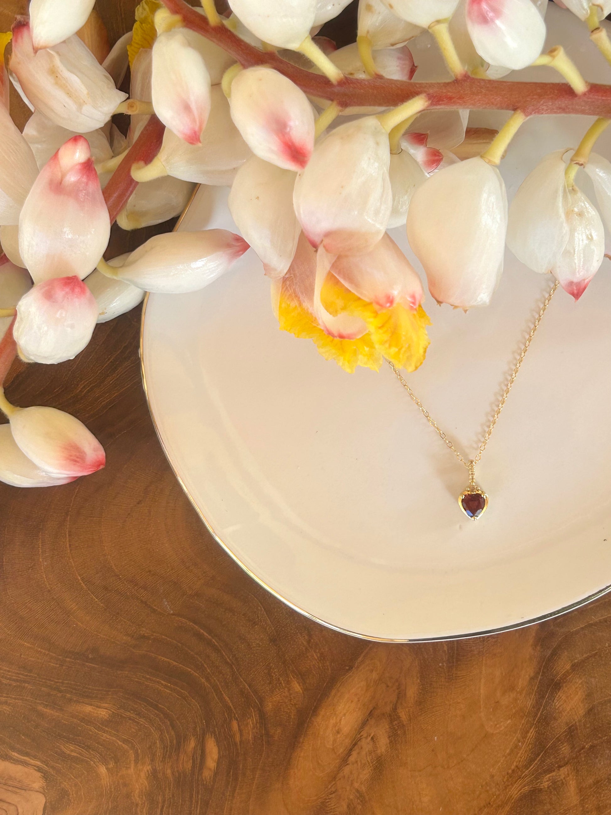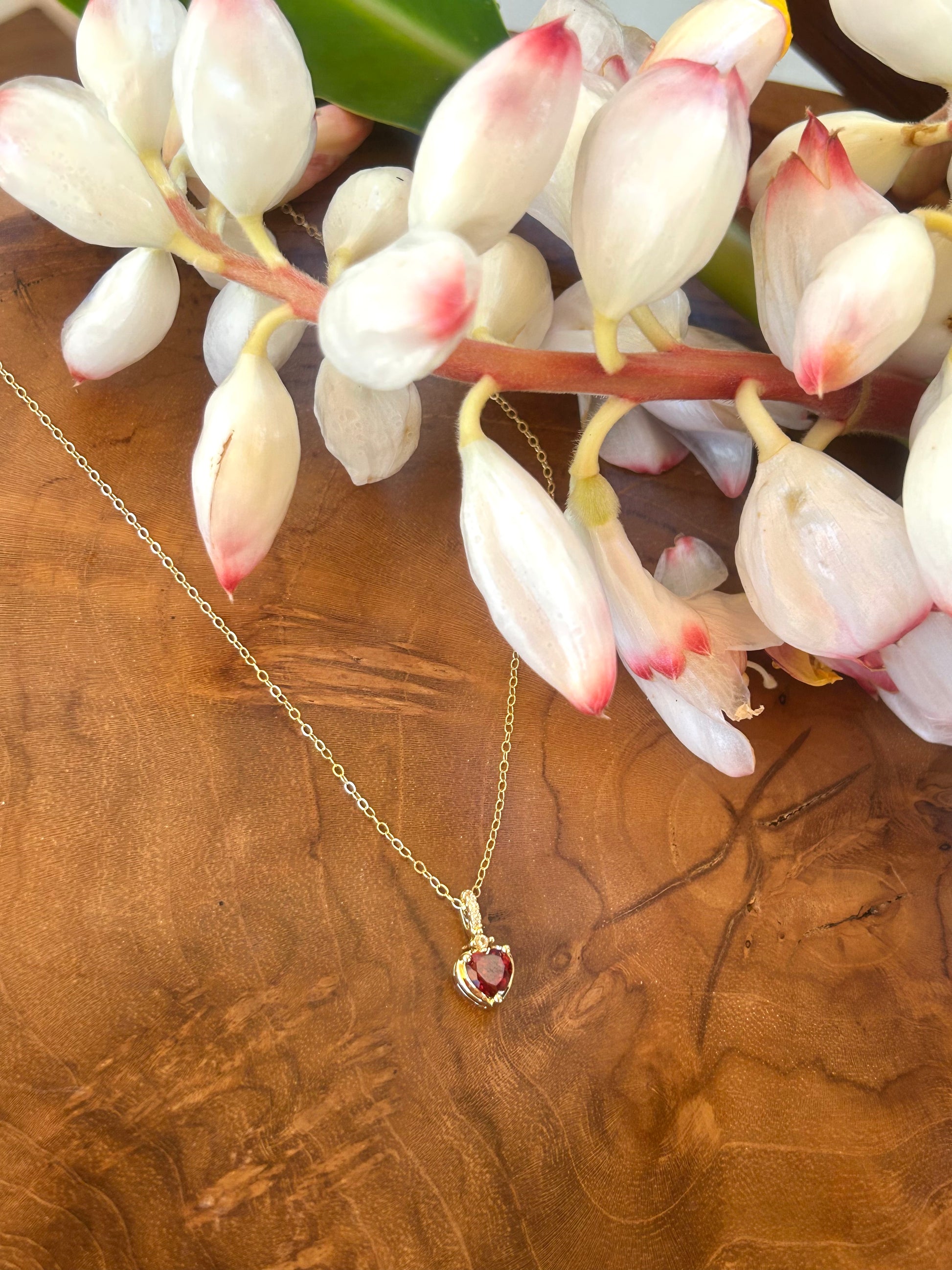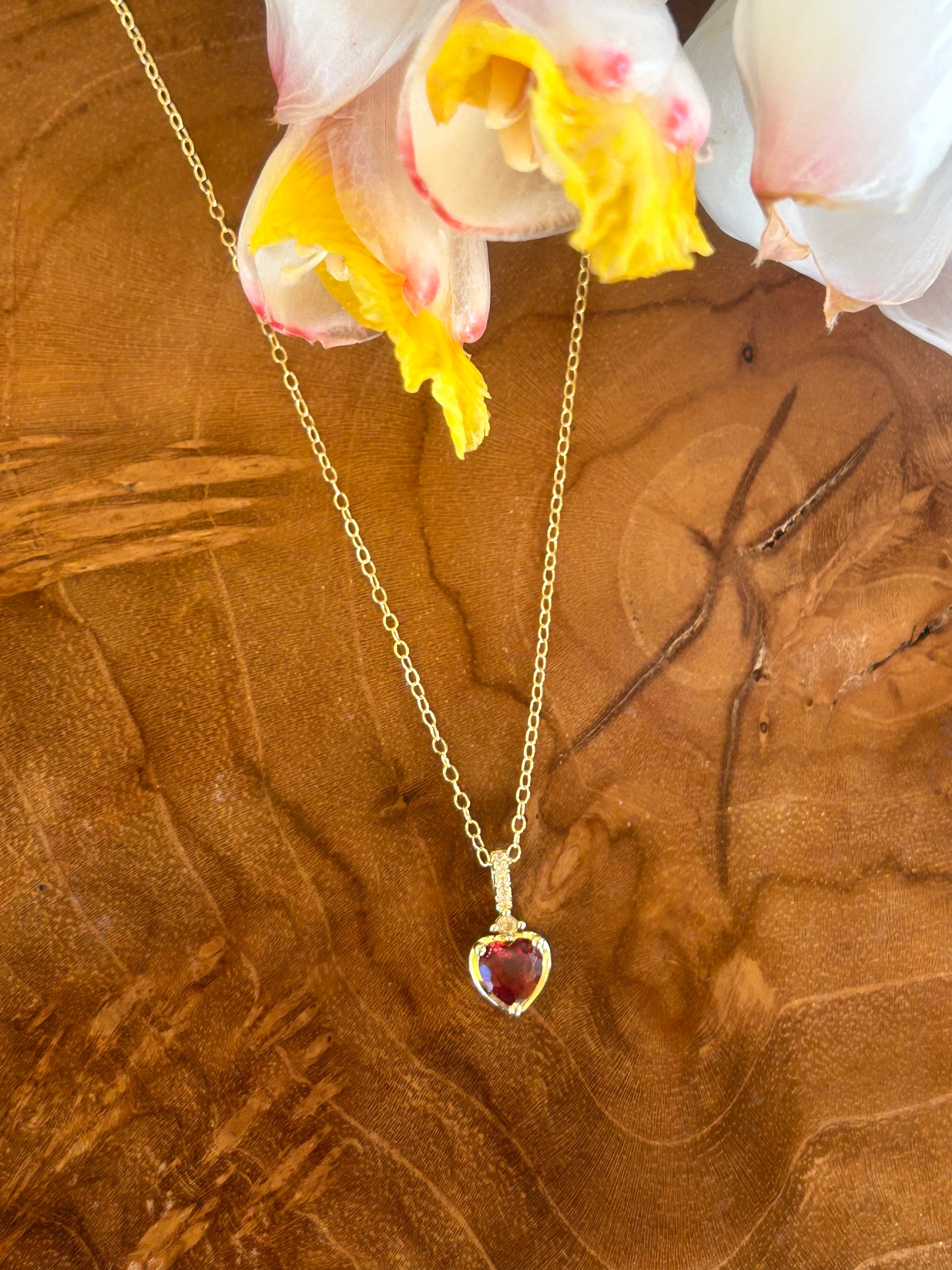 14kt Goldfilled necklace, gold-plated ruby red heart pendant