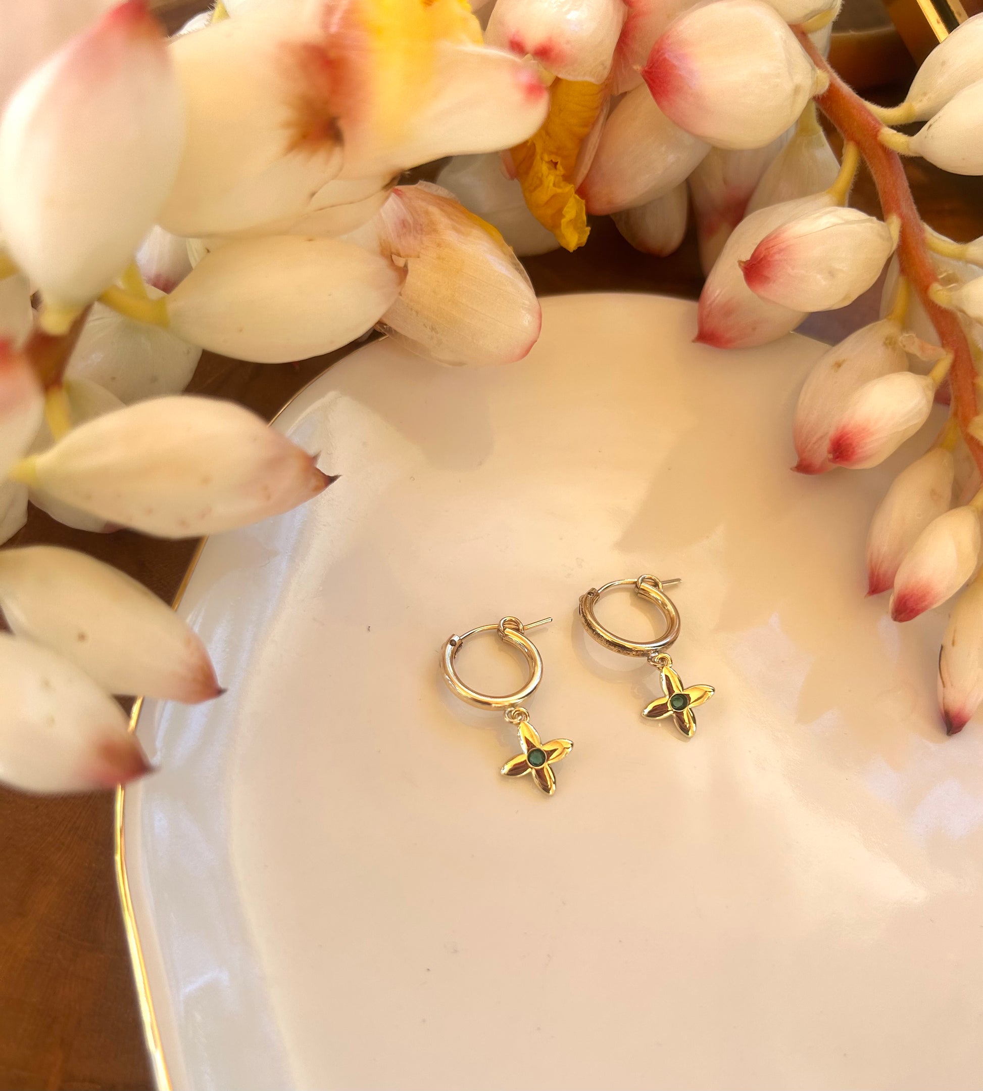 14kt Goldfilled Huggies w/ a emerald star pendant (gold plated)