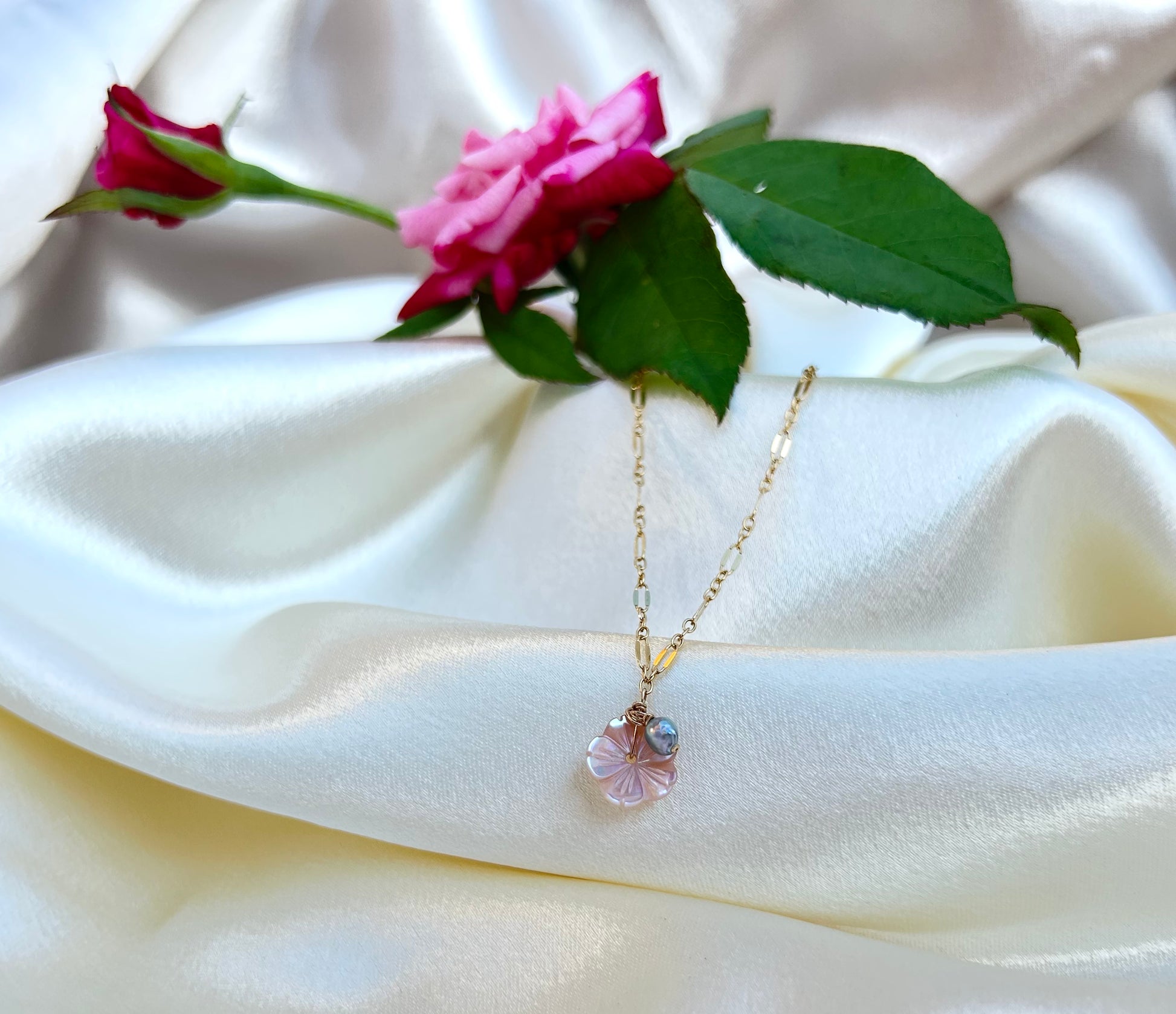 A sweet bracelet for a sweet soul! I decorated a pink pearl hibiscus with a Akoya pearl as the highlight of this 14kt GF bracelet