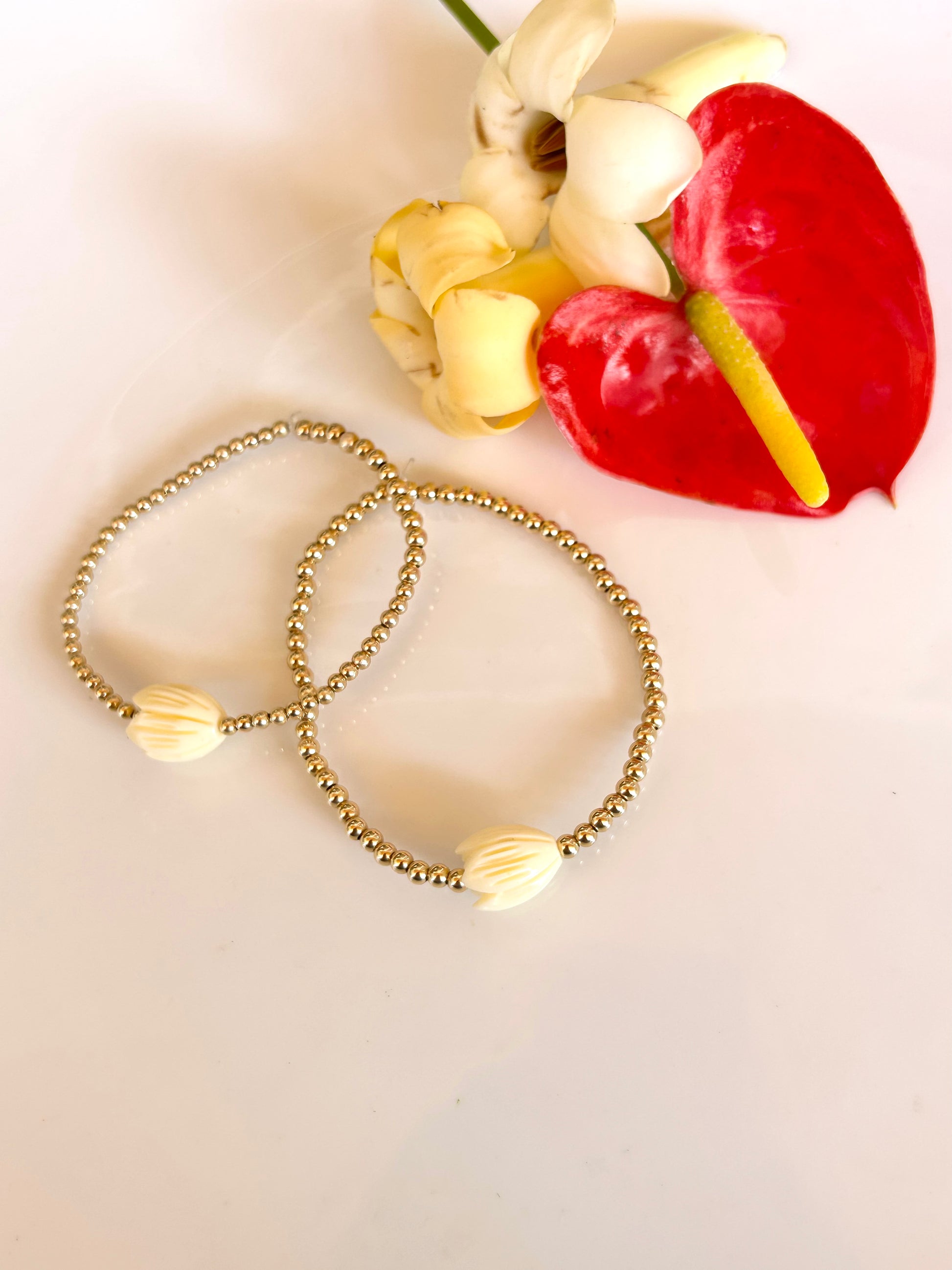 mini 14kt Goldfilled spheres + large Pikake bead