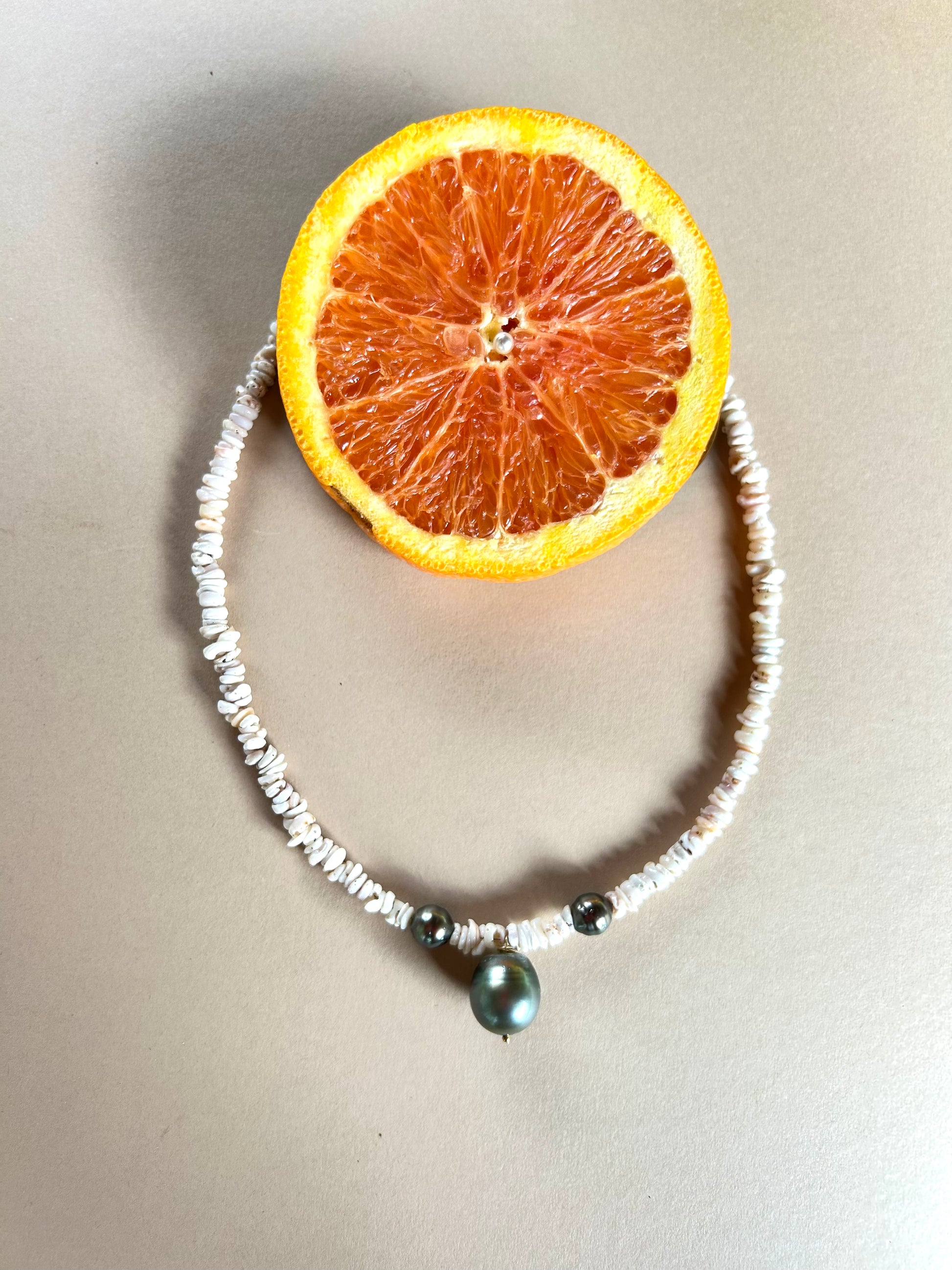 3 Tahitian pearls + tiny puka shells